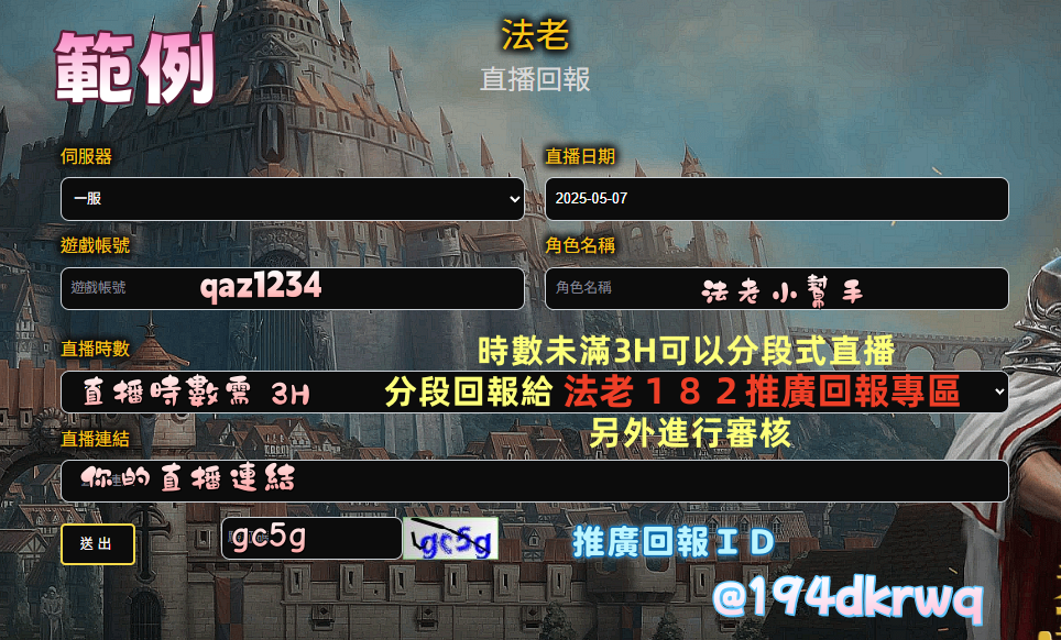 ★直播抖音需標題明確(遊戲ID要與回報相符)